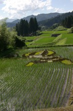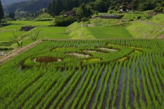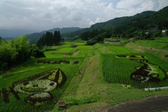 / 農業,田んぼアート,稲作,植物,棚田,竹藪,建物,岩石,魚,電柱,木,森林