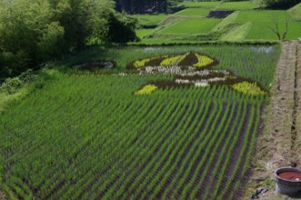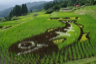 / 農業,田んぼアート,稲作,植物,棚田,傘,竿,竹藪,建物,岩石,魚,木,森林