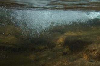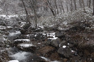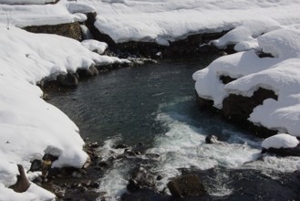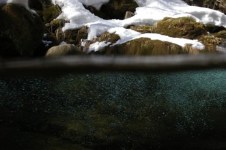 / 川,岩石,雪,氷,水しぶき,河畔植生,水中,植物
