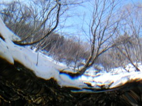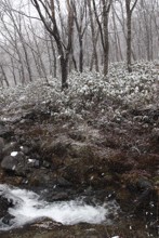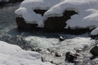 / 川,岩石,雪,氷,水しぶき,河畔植生,植物,木,森林