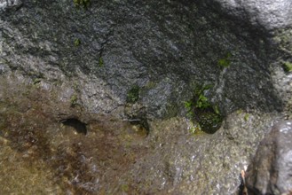 / 川,岩石,河畔植生,植物,水滴,コケ