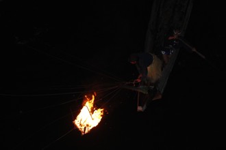 / 鵜飼い,漁,人,鵜匠,火の粉,船