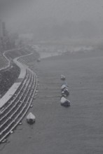 / 雪,船,川,建物