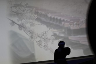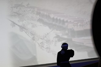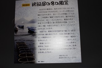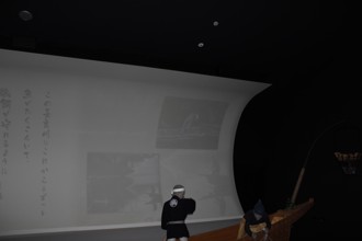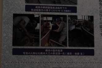 / 展示,スクリーン,船,鵜飼,鵜匠,法被,鉢巻,人,模型