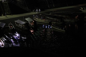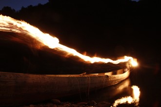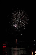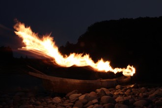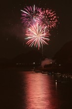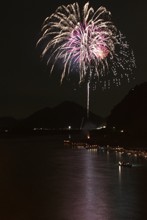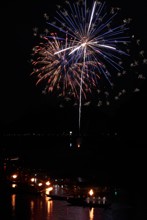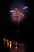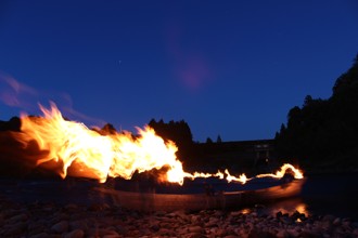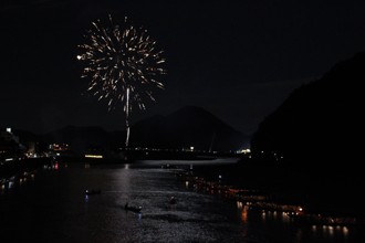 / 川,花火,建物,船,かがり火,鵜飼い