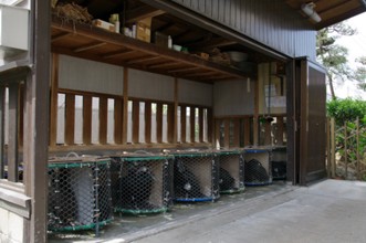 / 建物,カゴ,鳥,ウ,鵜,ブラシ,段ボール,カラーコーン