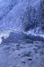 / 山,川,岩石,植物,木,河畔植生,雪