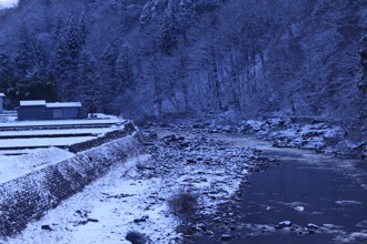 / 山,川,岩石,植物,木,河畔植生,雪,石垣,建物