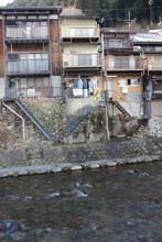 / 川,岩石,植物,電柱,電線,建物,洗濯物,アンテナ,階段,石垣,山