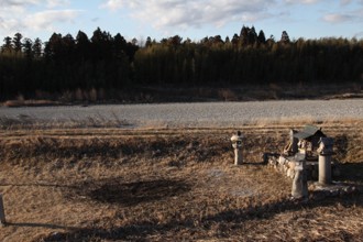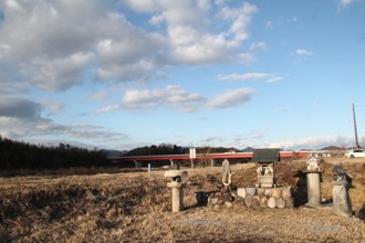 / 空,雲,山,神社,橋,河畔植生,植物,車,電柱