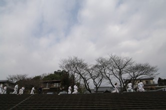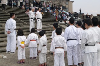 / 人,子供,着物,武道,空,雲,建物,階段,砂