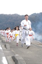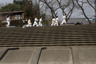/ 人,子供,着物,武道,空,建物,木,電柱,電線,階段