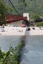 / 人,岩石,神社,川,河原,テント,橋,山,建物,車