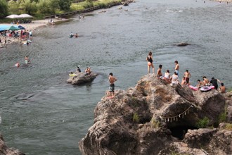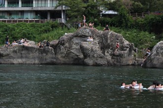 / 人,岩石,神社,川,河原,テント