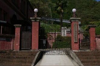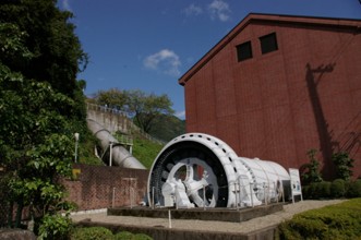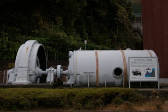 / 水力発電所,建物,山,木,植物,電柱,電線