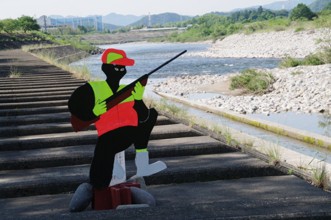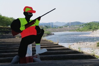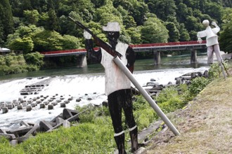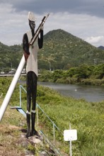/ 川,橋,ブロック,岩石,河畔植生,看板,かかし