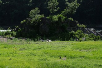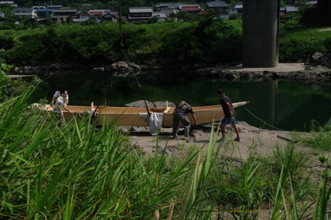 / 人,眼鏡,傘,船,子供,岩石,川,河畔植生