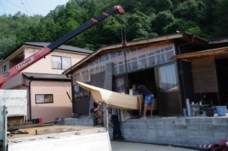 / 人,帽子,建物,船,空,山,電線,電柱,車,重機