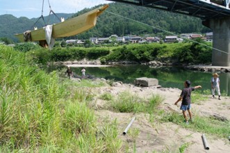 / 山,鉄塔,建物,橋,船,川,河原,河畔植生
