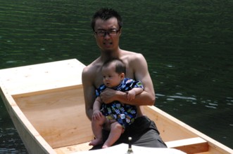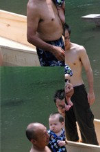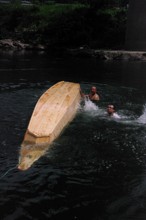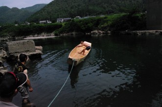 / 人,船,川,子供,岩石