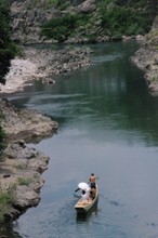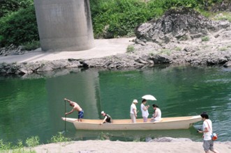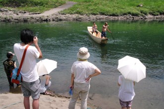/ 人,川,船,子供,岩石,河畔植生,傘