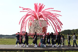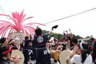 / 人,祭り,神輿,子供,空,山,太鼓,楽器,建物,笛