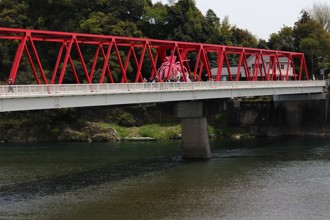 / 人,祭り,神輿,空,山,建物,橋,川