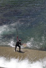 / 川,人,帽子,釣り,魚