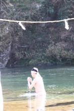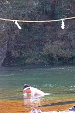 / 人,川,植物,河畔植生,裸,縄,はちまき