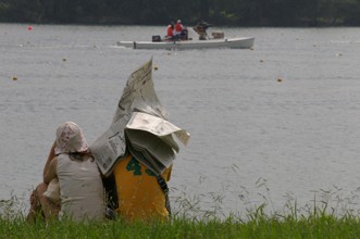 / 人,川,新聞紙,船,植物,帽子,河畔植生