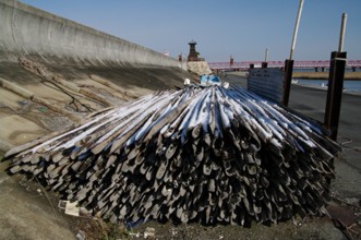/ 竹,雪,空,橋,川,植物,石垣,木,船,建物