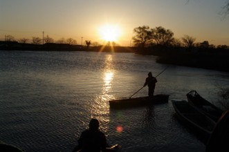 / 人,川,太陽,船,植物,木,車,建物,帽子,網