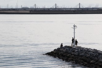 / 人,建物,船,帽子,釣り竿,岩石,網