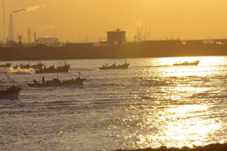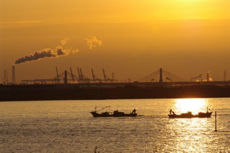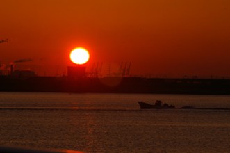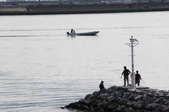 / 人,船,旗,空,木,植物,車,建物,消波ブロック,橋,鉄塔,長靴,帽子,かご
