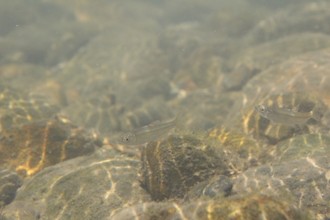/ 川,岩石,魚,建物,植物,河畔植生,木,空