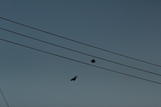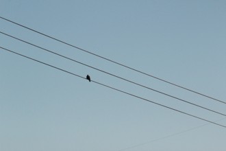 / 看板,標識,カラス,鳥,空,山,植物,木,鉄塔,街灯
