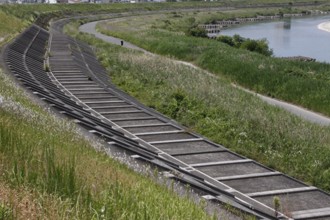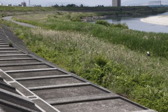 / 人,堤防,植物,河畔植生,川,消波ブロック,堤防