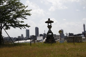 / 灯篭,木,植物,カーブミラー,石碑,建物,看板,空