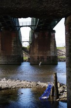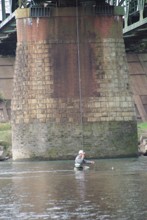 / 川,人,釣り竿,帽子,橋,植物,河畔植生