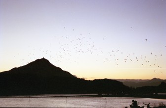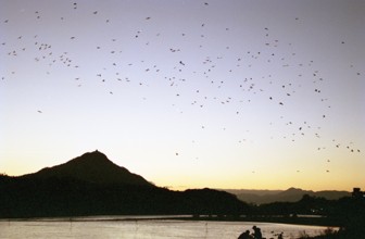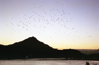 群鳥・金華山遠望 / 山,夕焼け,山,鳥,人,川,金華山,城,岐阜城