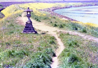亀の渡し灯明 / 植物,灯籠,道,消波ブロック,川,河畔植生,堤防
