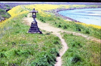/ 植物,道,灯籠,消波ブロック,川,河畔植生