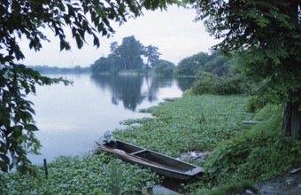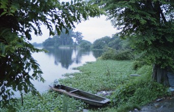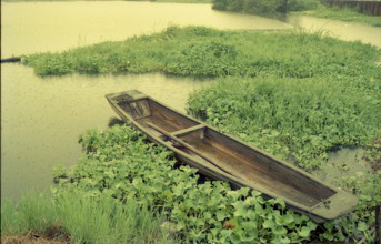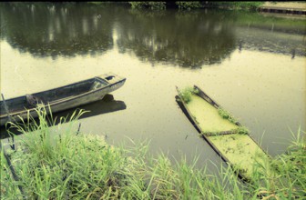 水郷地帯 / 船,植物,水草,木,ごみ,電柱