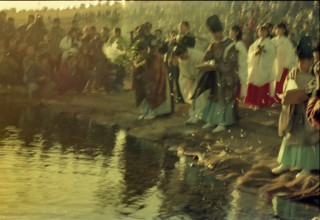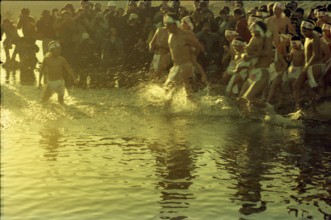 裸祭り / 人,裸,子供,はちまき,ふんどし,カメラ,帽子,しぶき,眼鏡,川