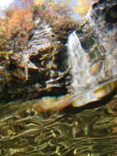 / 川,水中,岩石,河畔植生,植物,滝,紅葉,落ち葉