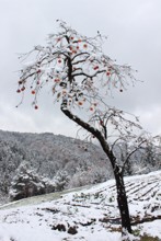 / 雪,植物,木,実,柿,空,雲,岩石,支柱