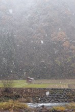 / 川,岩石,植物,河畔植生,畑,建物,はしご,雪,木