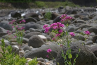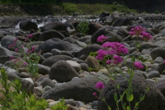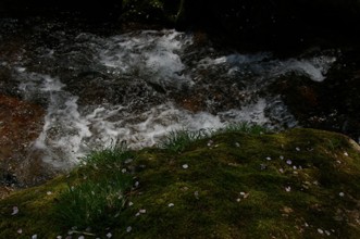 / 川,しぶき,植物,河畔植生,岩石,花びら