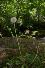 / 川,岩石,植物,河畔植生,タンポポ,たんぽぽ,綿毛,種子