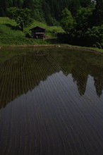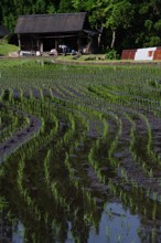 / 棚田,植物,木,畑,水田,建物,石垣,ビニールハウス